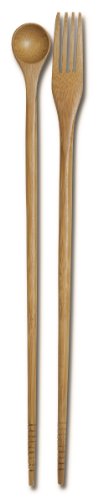 This Burnished Bamboo Chopstick Set comes with 13-Inch Burnished Bamboo Chopsticks. The unique fork and spoon ends are great for tasting while cooking. Even if you're just throwing together some take-out, these chopsticks add flair to your meal. Each pair is balanced to fit comfortably in your hand. Functional and attractive, they're a timeless addition for sushi lovers and Asian food epicures.